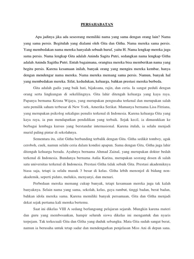 Kumpulan cerpen persahabatan terbaru hasil karya para sahabat cerpenmu, puluhan ribu cerita pendek cerpen telah diterbitkan disini! Dia adalah rio, sahabat terbaikku. Aku mempunyai seorang sahabat,namany keysa. Hingga tiba hari di mana mereka harus berpisah. Mengutip buku kumpulan cerpen karya anak bangsa oleh afwan sutdrajat, berikut salah satu contoh cerpen tentang persahabatan. Namun, khusus bagi kalian yang lagi belajar tentang cerita pendek atau mencari contoh cerpen tentang persahabatan, cerpen lucu, cerpen cinta, . 1 lunatic · 2 bayangan dari masa lalu · 3 penicilium · 4 reuni · 5 cendera mata · 6 tali sepatu · 7 metamorfosa · 8 gemuruh lautan . Namun, yang membuat arin kecewa luna tidak mengucapkan sepatah kata apapun tentang kepergiannya. Pagi ini aku ingin mengajaknya untuk menonton beberapa video motivasi tentang anak miskin yang kuliah. Contoh cerpen pendidikan singkat tentang moral di sekolah. Namun sebelum lanjut ke poin inti mengenai contoh cerpen sahabat terbaik, ada baiknya kamu tehaui dahulu .